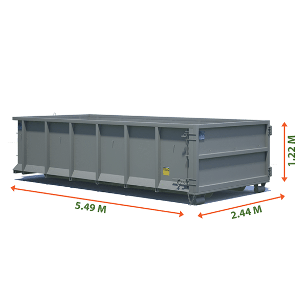 A 20 cubic yard bin is 18 feet long x 8 feet wide x 4 feet tall. These bins generally fit into most driveways and are not so huge that they take over the entire space. Our bins are tough and rugged, specifically designed to stand up to the range of batteries that the great diversity of sites we deliver to can put them through. Our 20 yard bin dimensions have proven sufficient for most home renovation projects, industrial cleaning projects, large restaurant and business garbage and recycling, as well as any commercial construction jobs which require a bit of extra space for all that waste. We suggest that a bit of care be taken to utilize as much of the space as you can because there is no point paying for empty space and, generally, the bin is more stable the fuller it gets.
